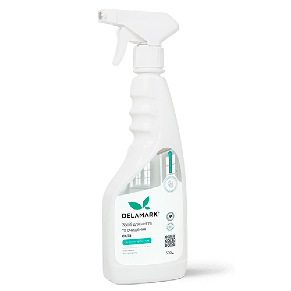 Концентрований засіб-спрей для миття й очищення скла зі свіжим ароматом De La Mark спеціально розроблений для легкого й безпечного миття вікон, скляних меблів і дверей, порцеляни, фаянсу, кераміки та інших неметалевих поверхонь. Має безпечний склад і зручну упаковку. Добре видаляє бруд і не залишає розводів