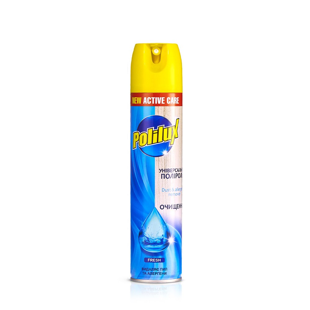 Універсальни поліроль для ефективного та делікатного очищення дерев’яних, лакованих, ламінованих, скляних, пластикових, хромованих та інших поверхонь. Видаляє пил, бруд, відбитки пальців та інші нескладні побутові забруднення, не залишаючи розводів. Освіжає зовнішній вигляд, запобігає вицвітанню та зношенню лакового покриття. Надає поверхням первинний блиск. Антистатична дія запобігає повторному осіданню пилу протягом тривалого часу. Склад: вода демінералізована, органічний розчинник, інгібітори корозії, пропелент (пропан, бутан, ізобутан), неіоногенні ПАР, ароматизатор, консервант.
