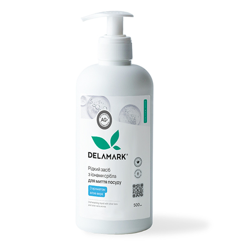 Опис Засіб для миття посуду DeLaMark з іонами срібла Алое віра 0,5 л