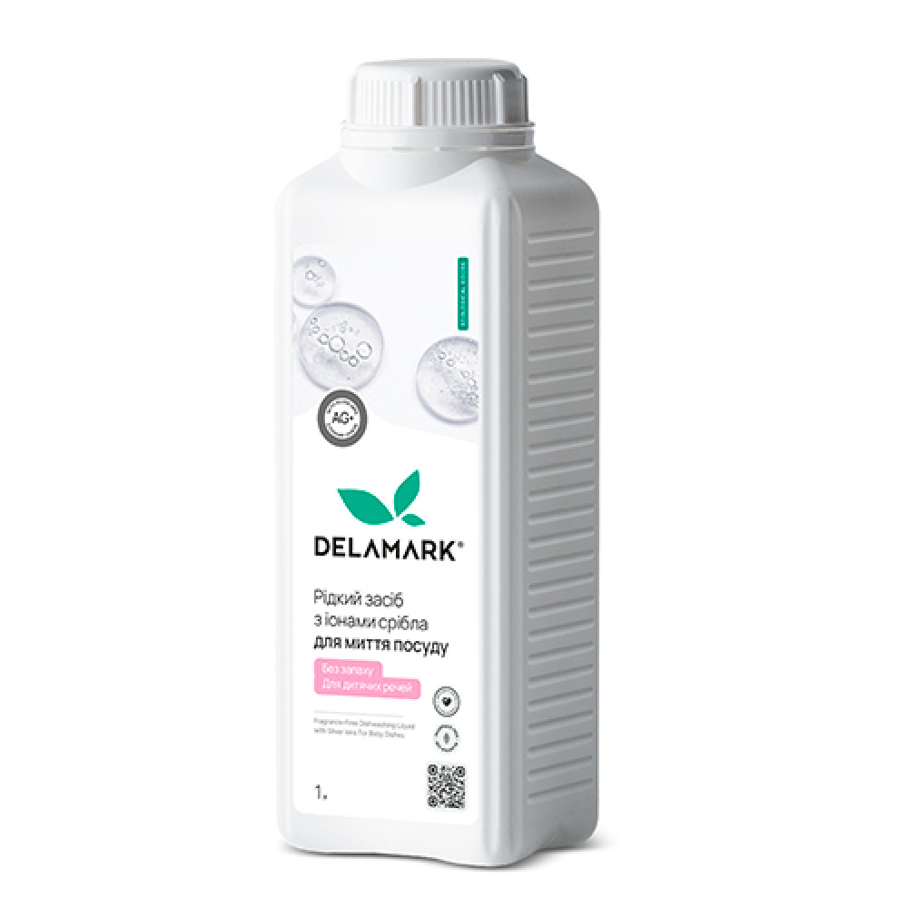 Опис Засіб для миття посуду DeLaMark з іонами срібла для дитячого посуду без запаху 1 л