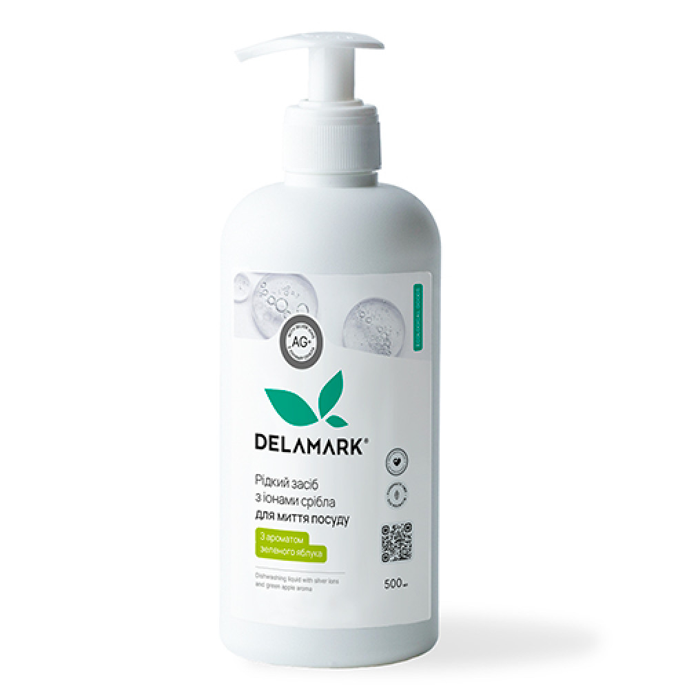 Опис Засіб для миття посуду DeLaMark з іонами срібла Зелене яблуко 0,5 л