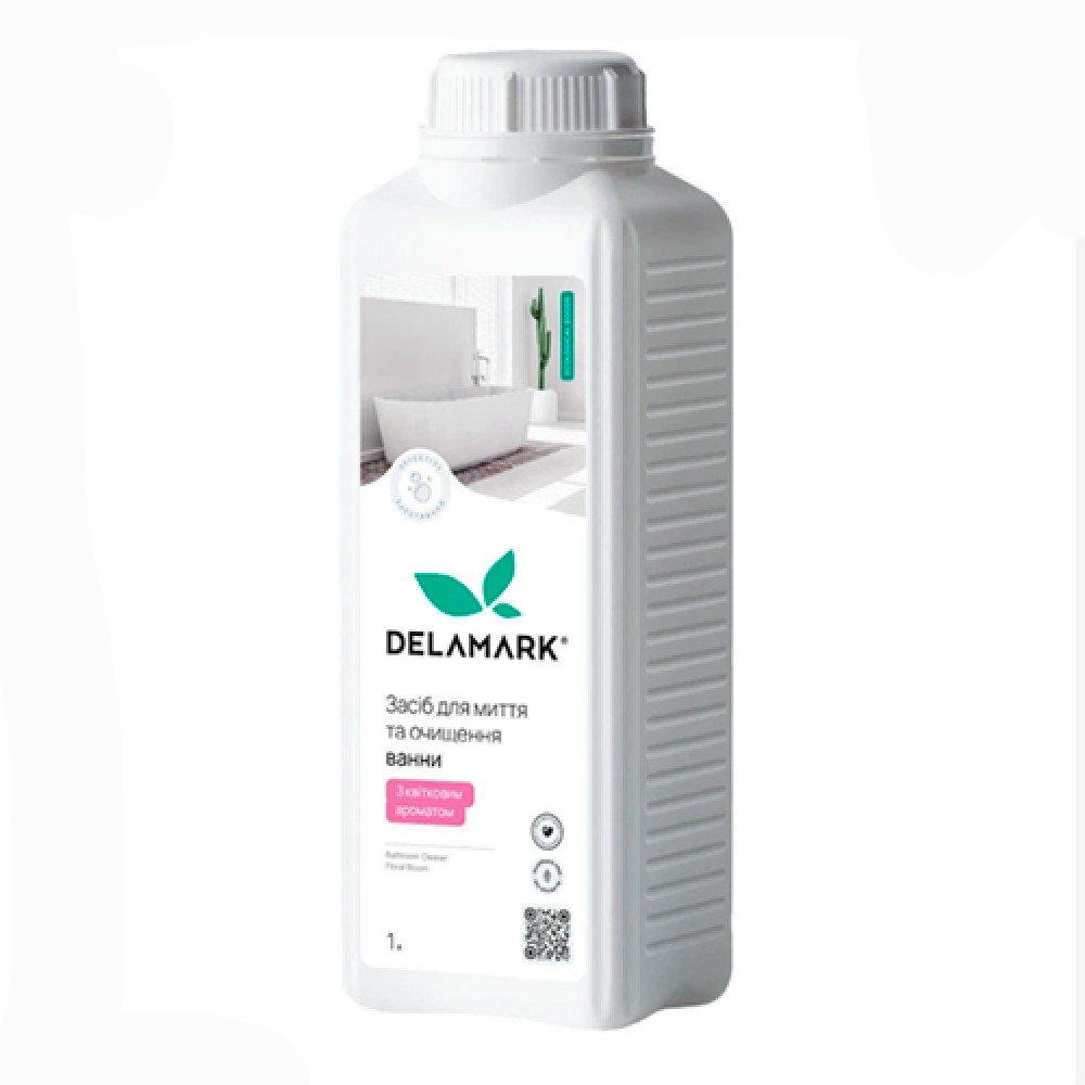 Засіб для миття і очищення ванної DeLaMark з квітковим ароматом призначений для ефективного і безпечного очищення ванної, душової кабіни, раковини, джакузі. Легко видаляє бруд, плями, сліди іржі, мильний і вапняний наліт з керамічних, скляних, порцелянових, пластикових, в тому числі акрилових, та інших неметалевих поверхонь. Не підходить для алюмінію. Не дає шкідливих випарів. Усуває неприємні запахи і дезінфікує. Без шкідливих випаровувань.