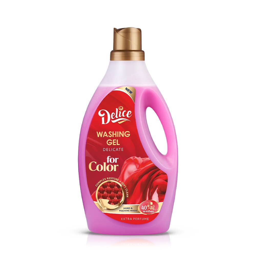 Гель для делікатного прання кольорових речей з різних типів тканин. Підходить для ручного і машинного прання. Спеціально розроблена формула уповільнює вимивання кольору, тому при постійному використанні речі довше зберігають свій первинний колір. Швидко розчиняється у воді і глибоко проникає в волокна тканини, видаляючи складні плями. Добре виполіскується. Має приємний аромат. Не містить фосфатів. Склад: вода демінералізована, аніонні ПАР, неіоногенні ПАР, мило, сіль ЕДТА, ароматизатор, інгібітор переносу кольору, ензими, консервант, барвник.