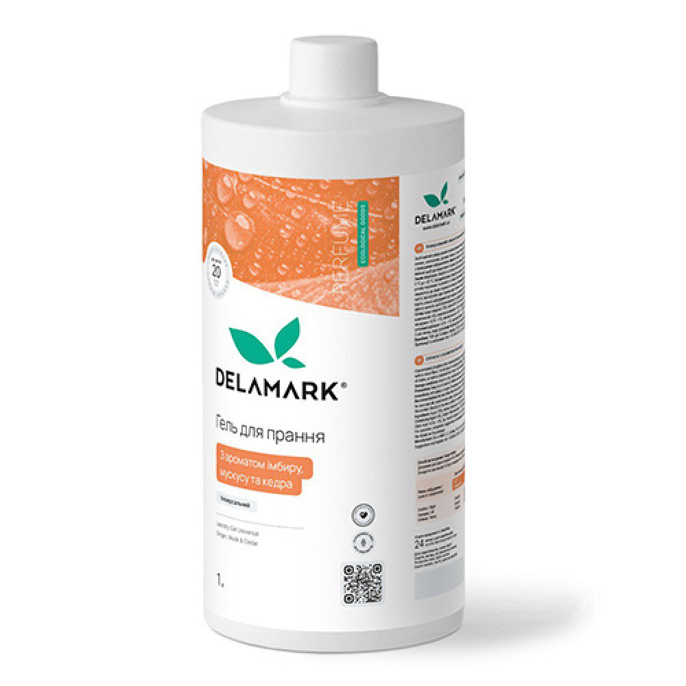 Характеристики Гель для прання універсальний, з ароматом імбиру, мускусу та кедра DeLaMark 1 л