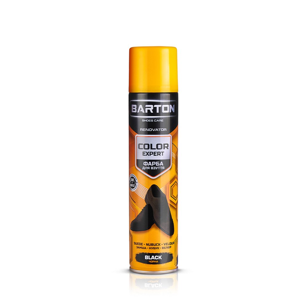 Опис Фарба для взуття з замші, нубуку, велюру Barton Color Expert чорна (аерозоль) 300 мл