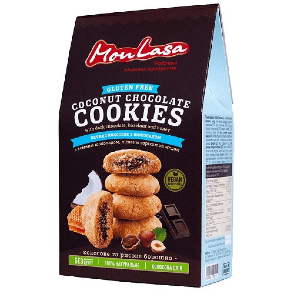 Опис Печиво MonLasa Кокосове з шоколадною начинкою безглютенове, 120г