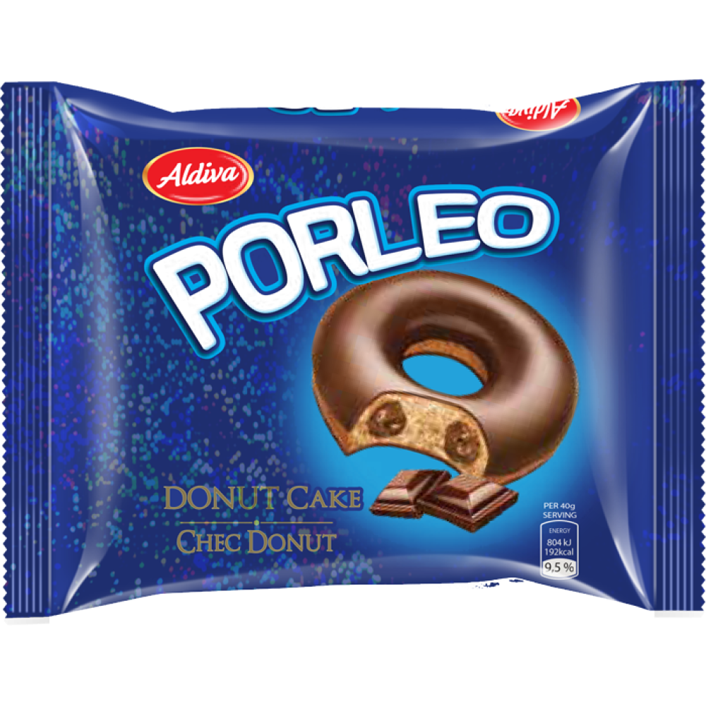 Опис Тістечко Донат Aldiva Porleo з шоколадною начинкою у шоколадній глазурі 60г (8681270487412)