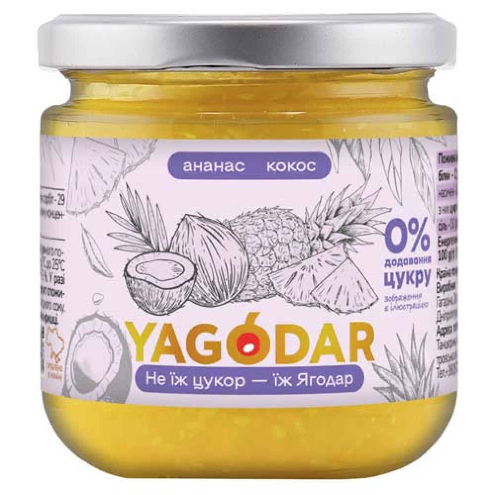 Характеристики Ананасовий джем без цукру з кокосом YAGODAR 210 г