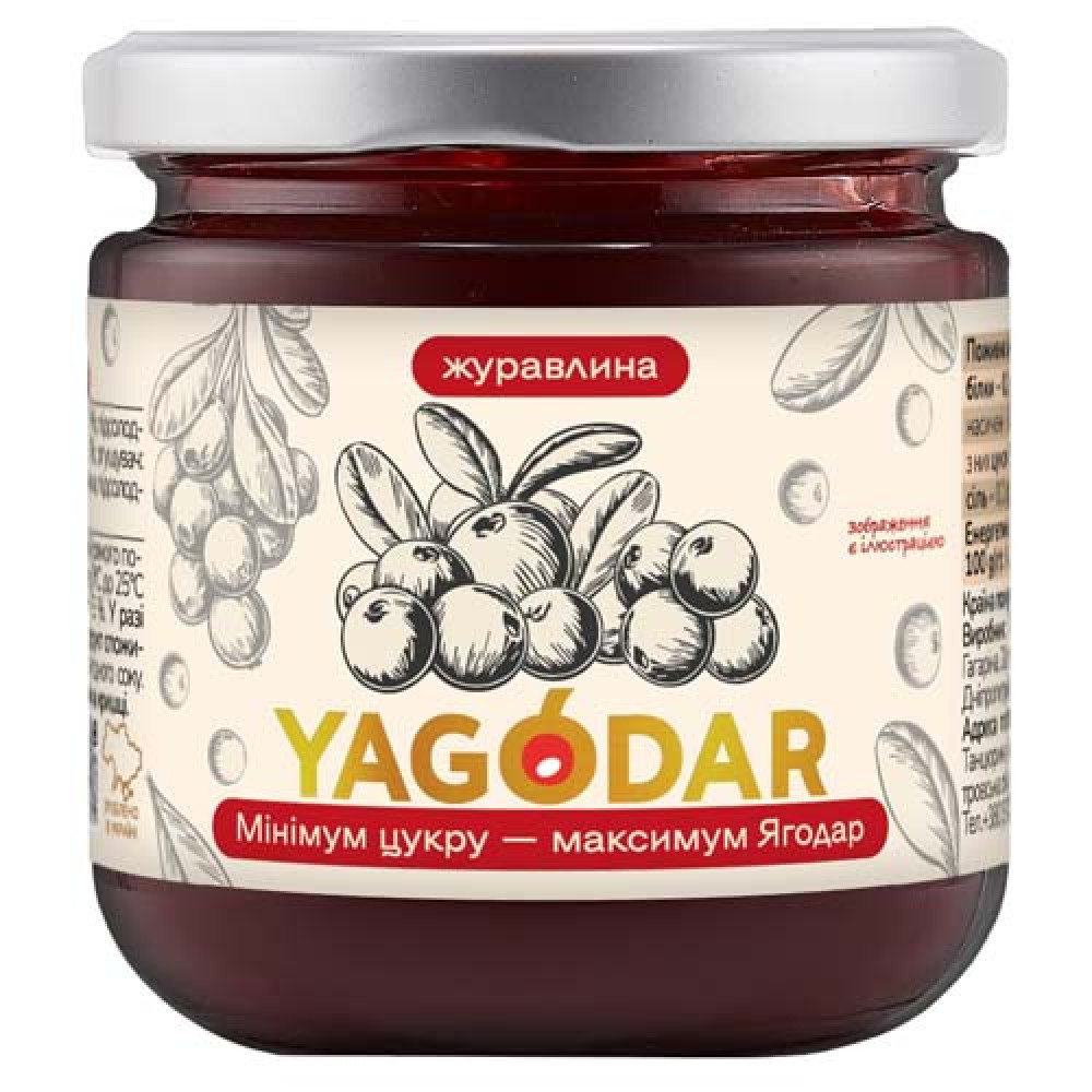 Джем з журавлини з низьким вмістом цукру YAGODAR 210 г