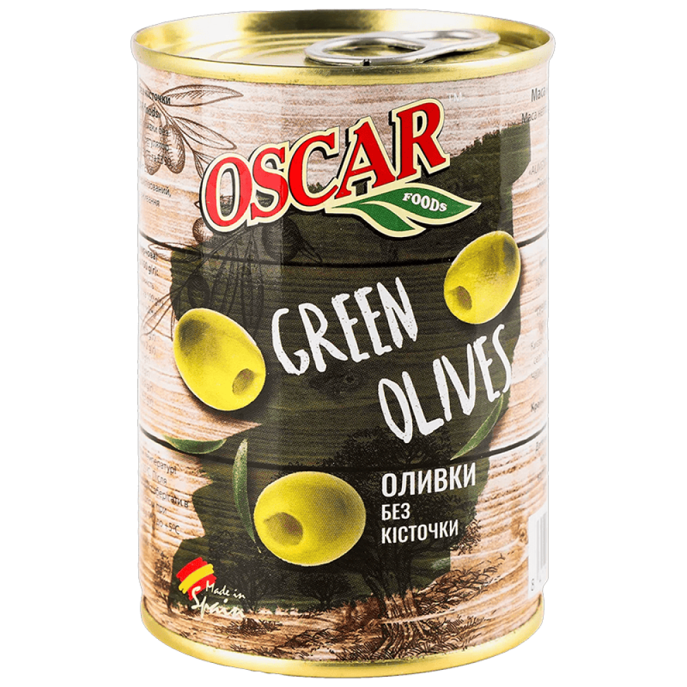 Оливки Oscar foods без кісточки, 280 г ж/б ключ
