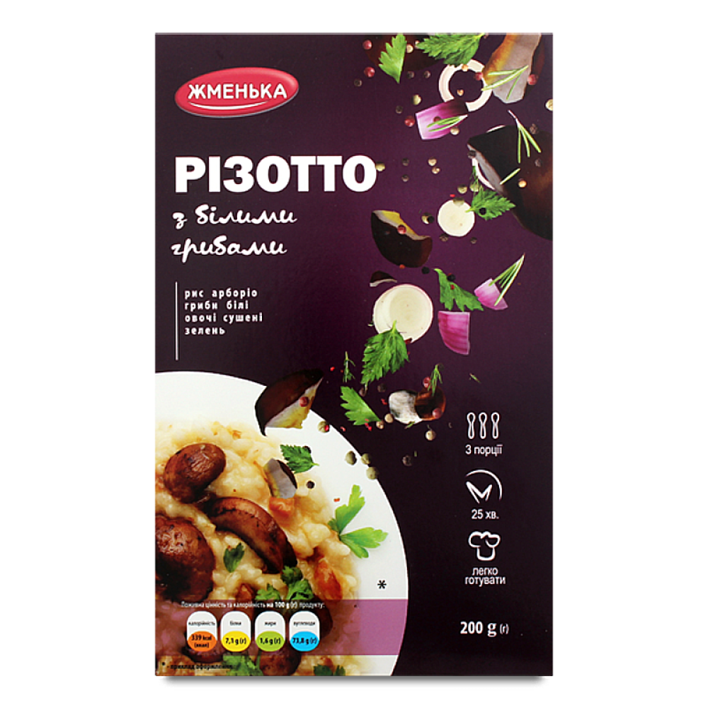 Різотто з білими грибами ТМ «Жменька» – це готове рішення для Вашого швидкого сніданку, ситного обіду чи смачної вечері. Ця класична страва італійської кухні давно стала візитною карткою Італії.