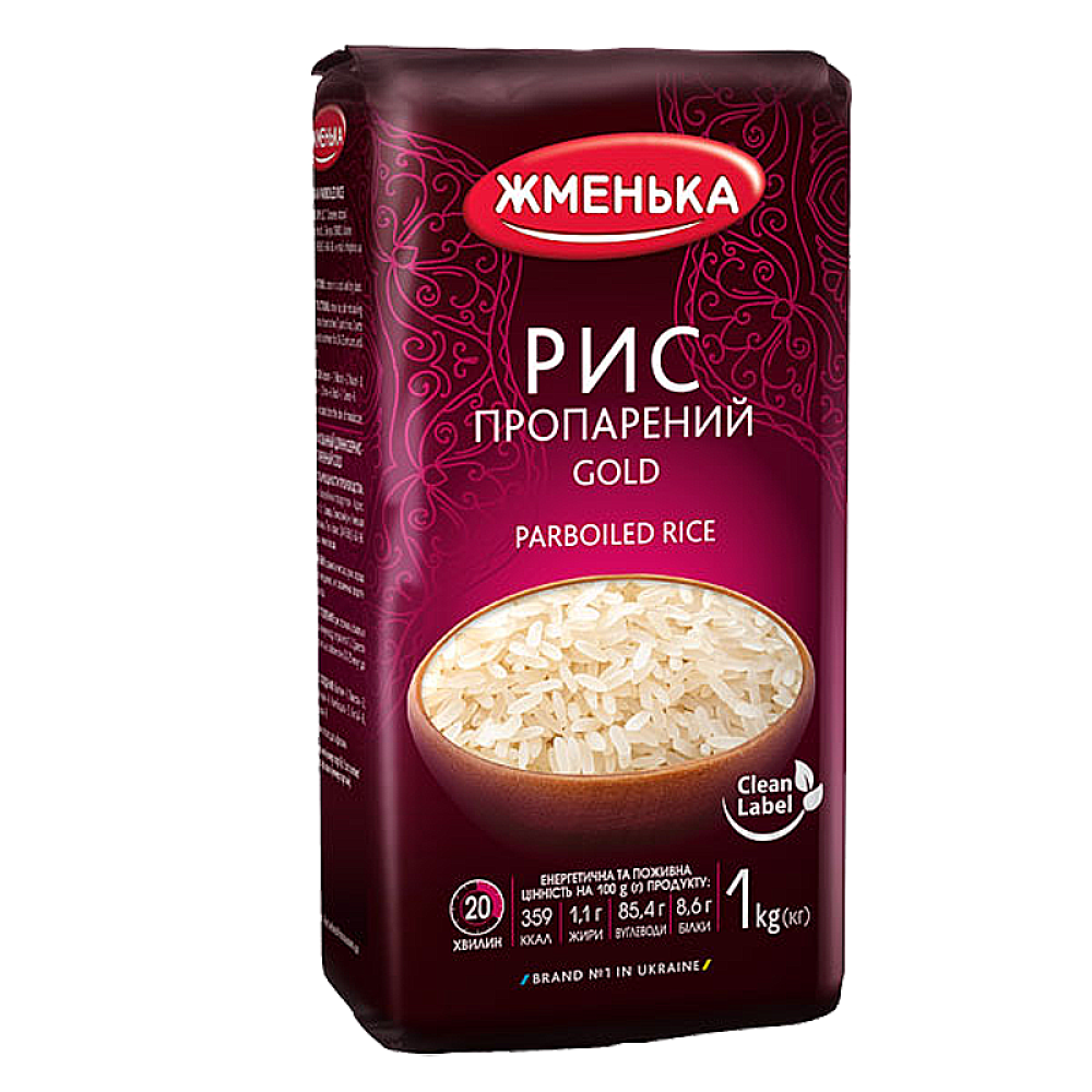 Пропарений рис Gold ТМ “Жменька” – це рис, що пройшов спеціальну обробку парою перед шліфуванням. Рис пропарений Gold ТМ “Жменька” має ті ж властивості, що й рис пропарений ТМ “Жменька”.
