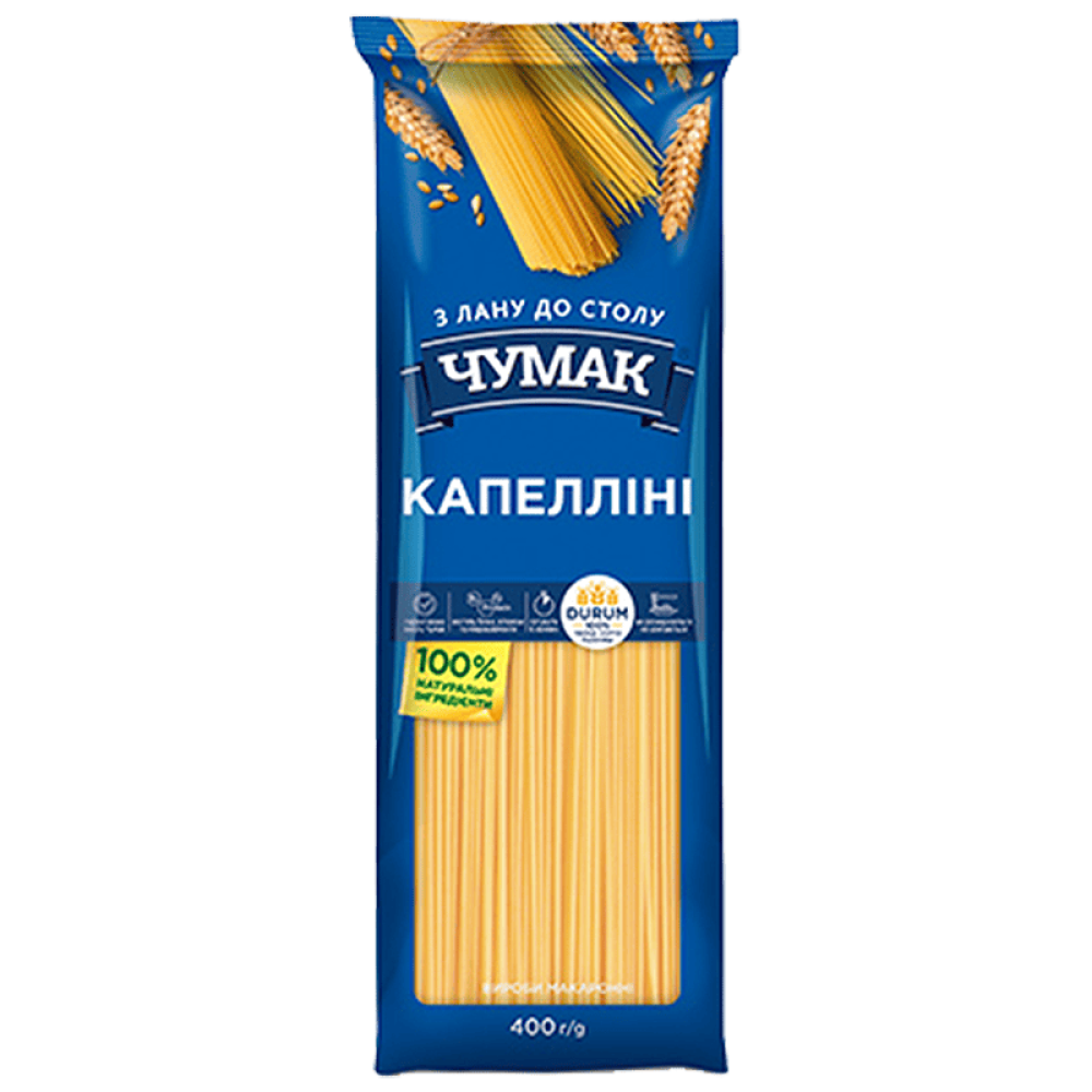 Характеристики Макарони ЧУМАК Капелліні ПУ 400г