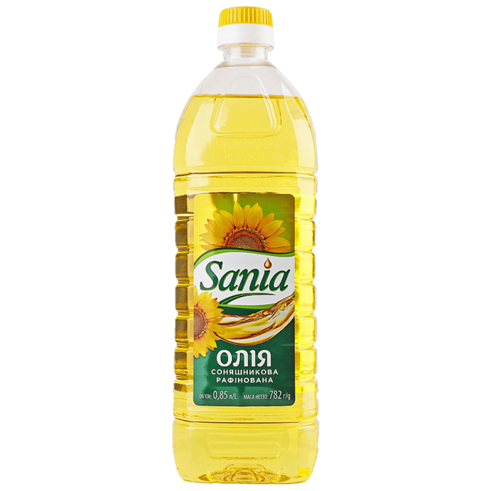 Характеристики Олія соняшникова Sania рафінована дезодорована ПЕТ 0,85л