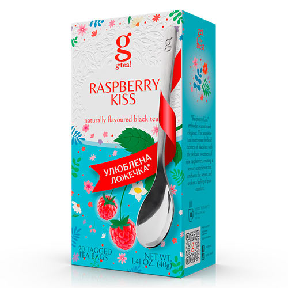 Чорний чай Grace Raspberry Kiss з ароматом малини. Продукт представлений у зручних пакетиках з ярликами, що ідеально підходить для швидкого та легкого приготування. Насичений смак чорного чаю гармонійно поєднується з яскравими нотками малини, створюючи ароматний напій. Упаковка містить 25 чайних пакетиків загальною вагою 50,0 г.