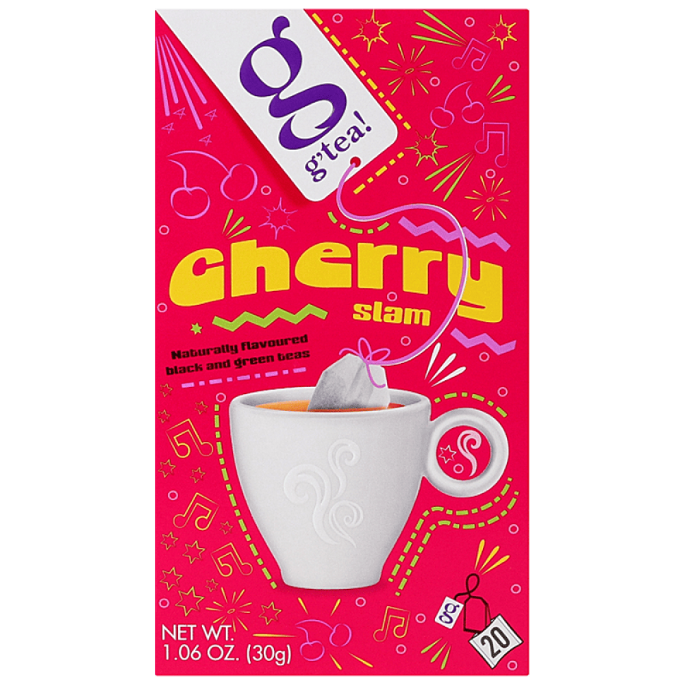 Чай G'tea "Черрі Слем" – це ароматна суміш чорного та зеленого чаю з вишневим смаком. Продукт представлений у зручних пакетиках, по 20 штук в упаковці, що ідеально підходить для швидкого приготування