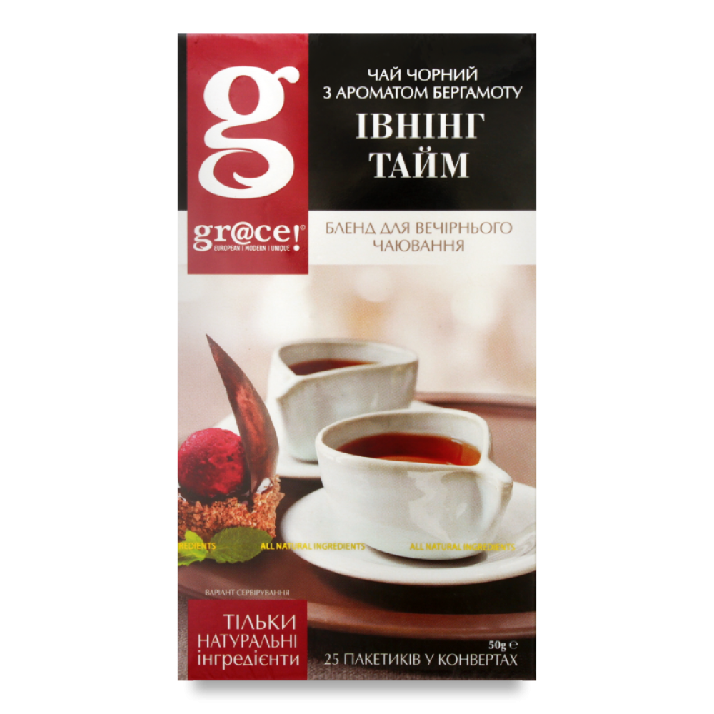 Опис Чай g’tea! Івнінг Тайм чорний байковий дрібний з ароматом бергамота, 20х2г