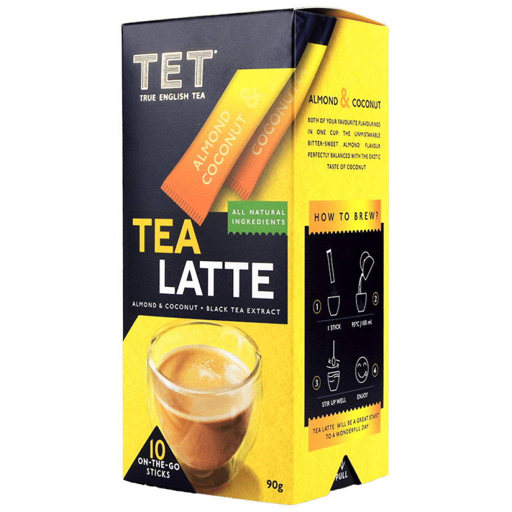 Миттєвий напій ТЕТ Ті Латте з ароматом мигдалю та кокоса – це зручна суміш для приготування чаю латте. Кожен стік містить 9 г суміші, яка при розчиненні в гарячій воді створює ароматний напій з нотками мигдалю та кокоса. Упаковка містить 10 індивідуальних стіків, призначена для швидкого приготування однієї порції.
