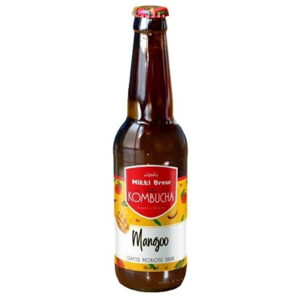 Опис Напій безалкогольний слабогазований Mikki Brew Kombucha Mangoo, скло, 0,35 л