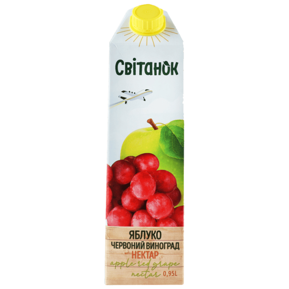 Опис Нектар Світанок яблучно-виноградний освітлений пастеризований з червоних сортів винограду TGA 0,95 л