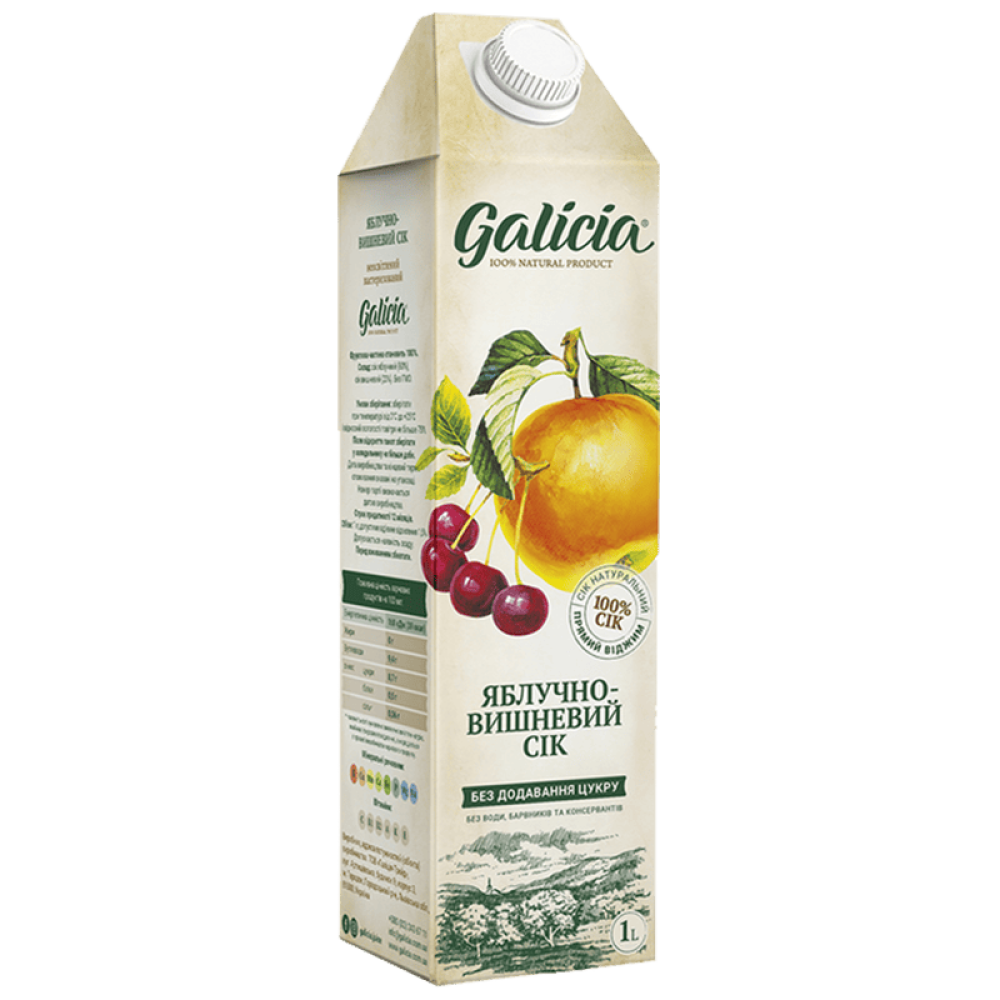 Опис Сік Galicia яблучно-вишневий неосвітлений пастеризований TGA 1л