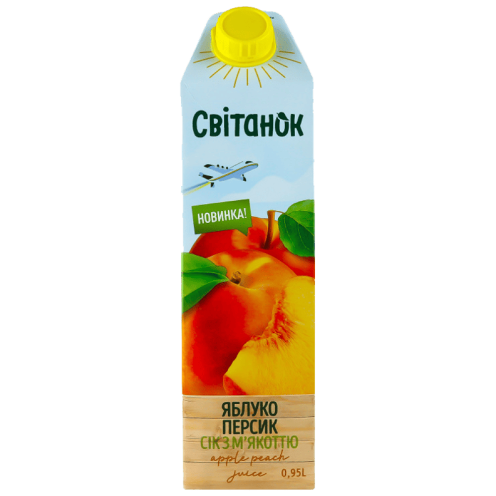 Опис Сік Світанок яблучно-персиковий з м’якоттю гомогенізований стерилізований TGA 0,95 л