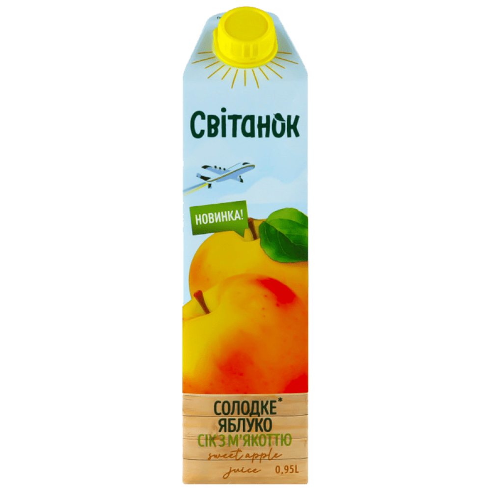 Опис Сік Світанок яблучний з м’якоттю гомогенізований стерилізований TGA 0,95 л
