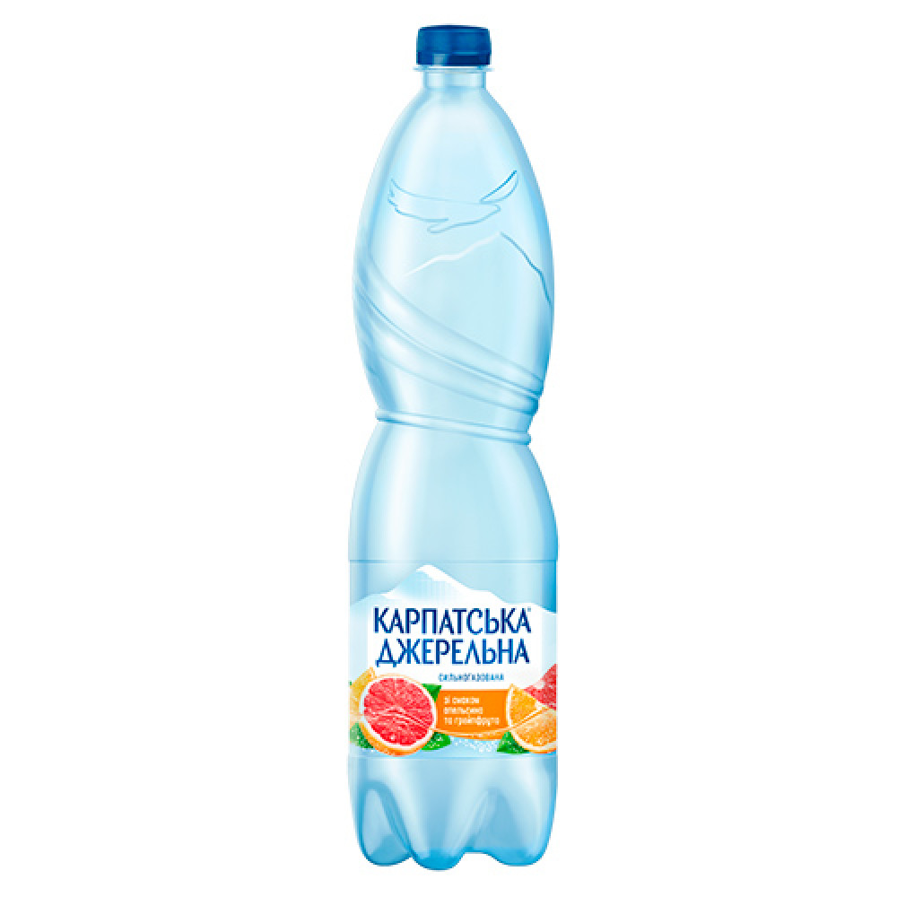 Напій Карпатська Джерельна сильногазований зі смаком апельсина та грейпфрута 1,5 л (4820051240448)
