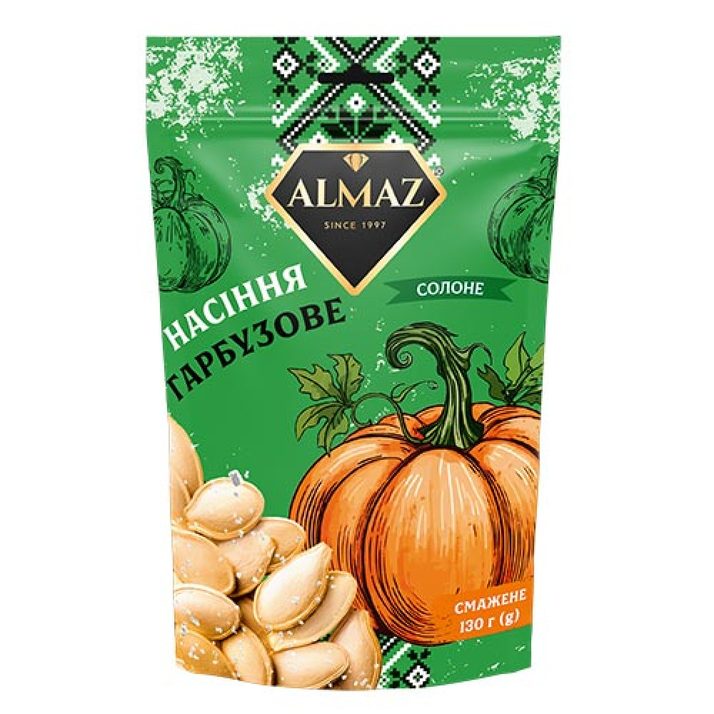 Насіння гарбузове смажене Almaz (ДОЙ-ПАК) солоне 130 г (4820284500715)