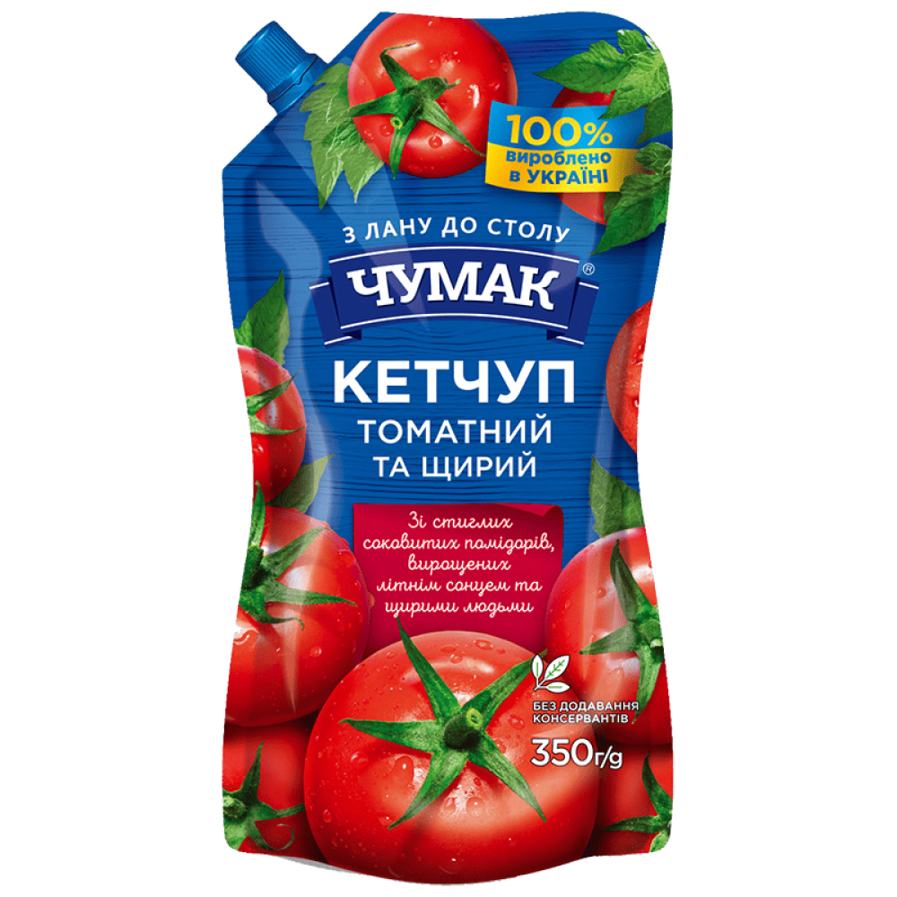 Опис Кетчуп ЧУМАК Томатний ДП 350г