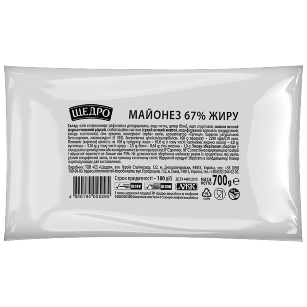 Класичний майонез із традиційним смаком і високим вмістом жиру 67%.