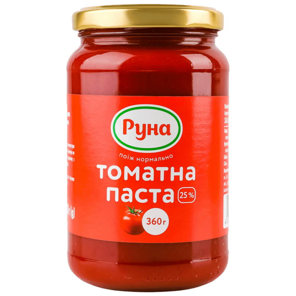 Опис Томатна паста Руна з вмістом сухих речовин 25% 360 г