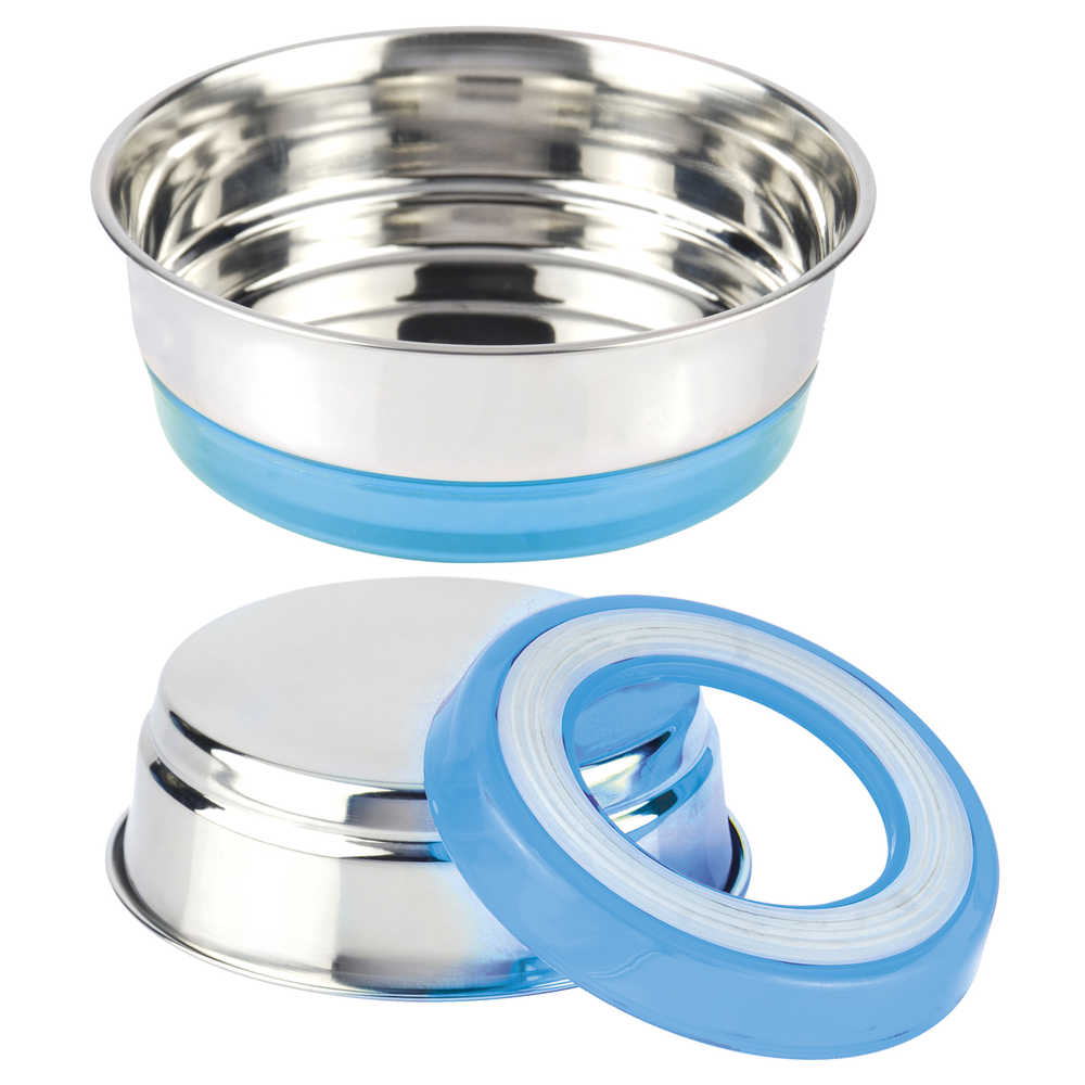 Оснащена гумовим кільцем флуоресцентного кольору, яке запобігає ковзанню чаші навіть на найгладкіших поверхнях.