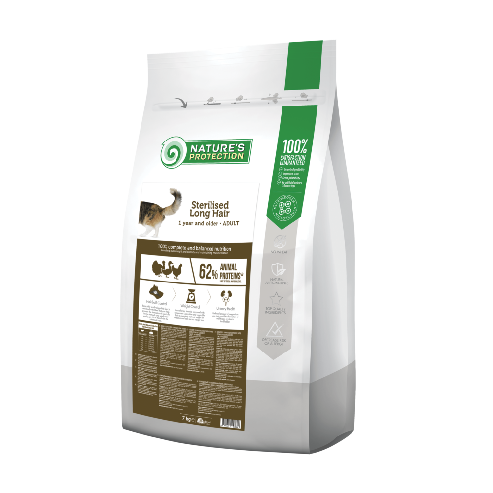 Характеристики Сухий корм для довгошерстих дорослих котів після стерилізації Nature's Protection Sterilised Long Hair 7kg