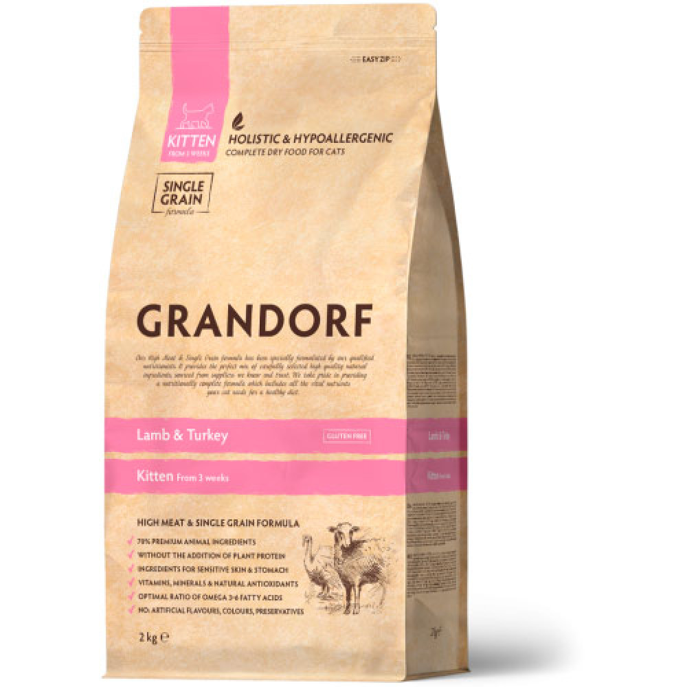 Опис Сухий корм Grandorf Kitten Lamb & Turkey з ягням та індичкою для кошенят 400 г