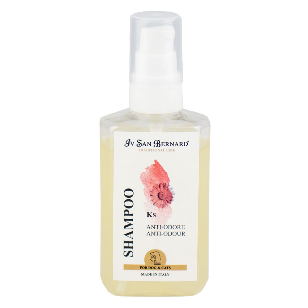 Шерсть деяких тварин має стійкий неприємний запах. Це трапляється у літніх тварин, у собак, які намокли під дощем, до цього схильні деякі породи собак, але найчастіше це відбувається через неправильний догляд за шкірним і шерстним покривами тварин. Шампунь Iv San Bernard KS Anti-Odour видаляє так само парфумерні запахи. Допомагає зберегти свіжість шкіри і шерсті тварини протягом 30 днів.