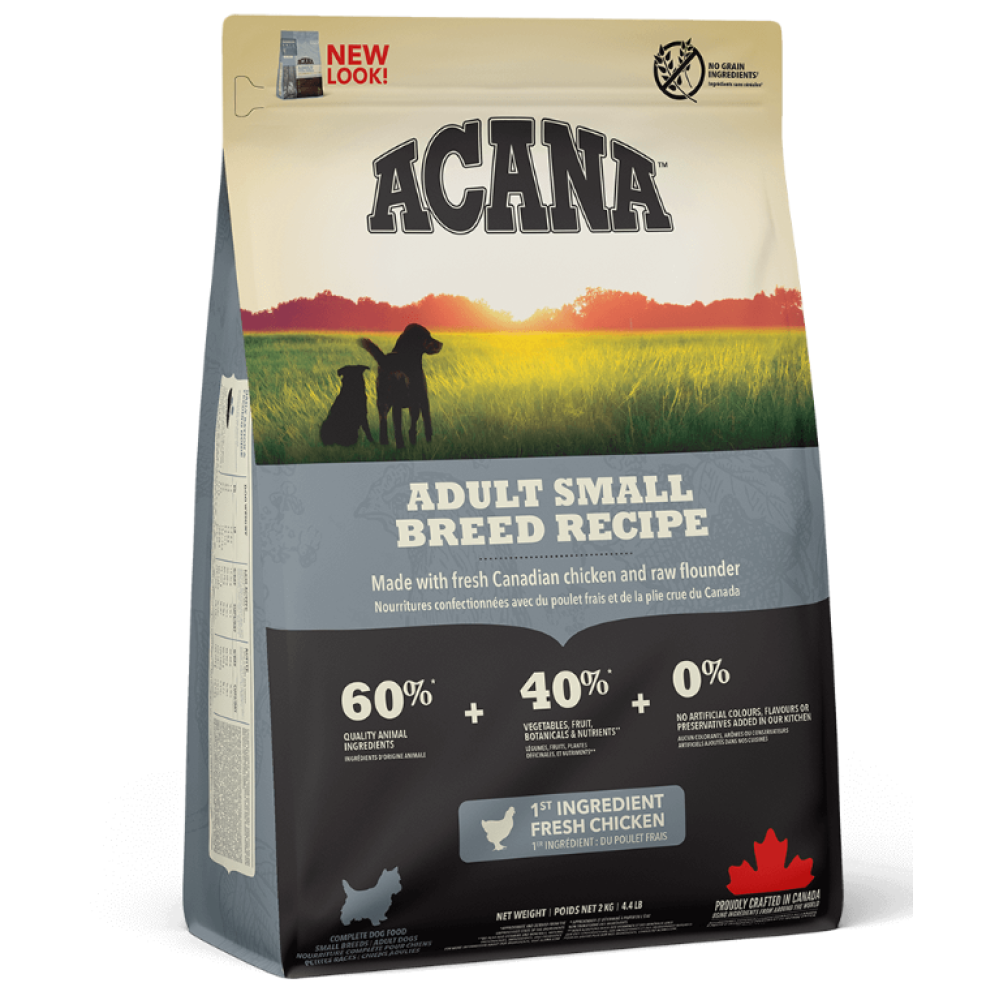 Коли це стосується корму ACANA, кожен інгредієнт має значення. Саме тому рецептура корму ACANA Adult Small Breed Recipe створюється з турботою, щоб забезпечувати всі потреби дорослих собак малих порід у харчуванні. Рецептура АКАНА Едалт Смол Брід Ресіпе на 60% переповнена якісними м'ясними інгредієнтами, такими як м'ясо канадських курчат та сирої камбали та на 40% збалансована фруктами, овочами та травами.
