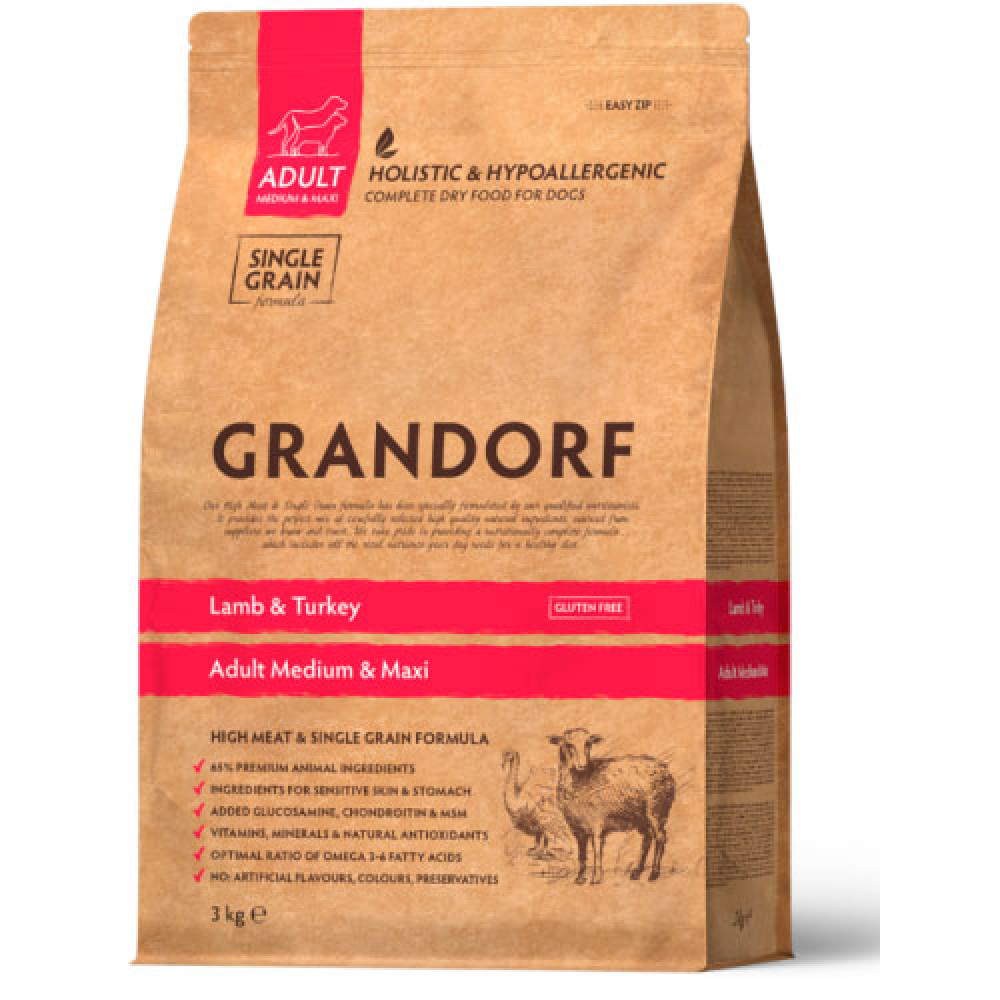 Опис Сухий корм Grandorf Adult Medium&Maxi Lamb&Turkey з ягням та індичкою для собак середніх і великих порід 1 кг