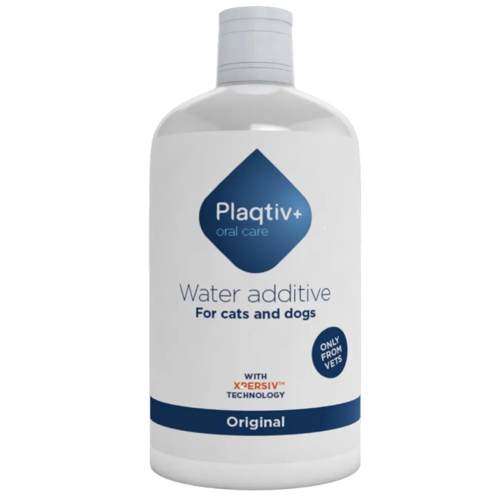 Виготовлену з концентрованої рідини без смаку, водну добавку Plaqtiv+ можна додавати до питної води вашого вихованця, і вона почне зменшувати утворення зубного каменю на поверхні їхніх зубів, захоплюючи мінерали, які перетворюють наліт на зубний камінь.