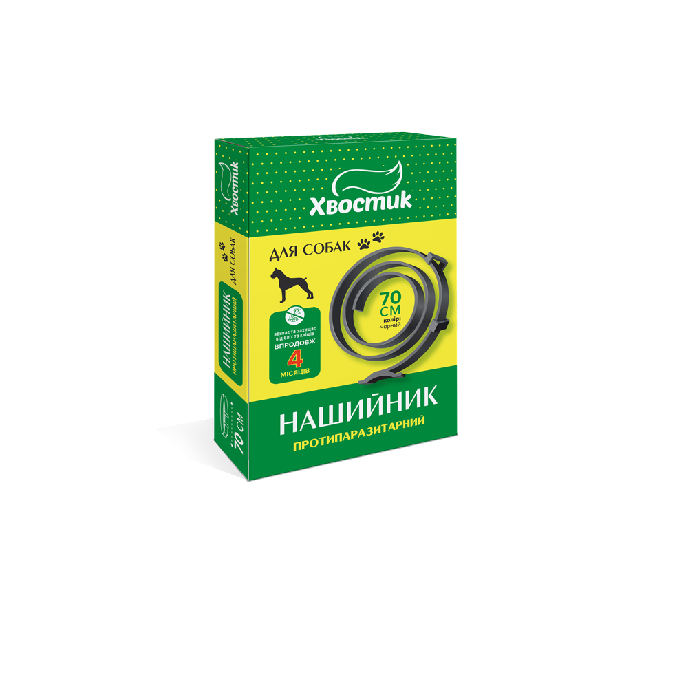 Опис Хвостик ТМ. Протипаразитарний нашийник для котів та собак (діазінон), чорного кольору, 70 см.
