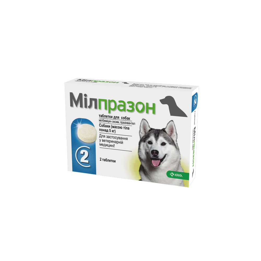 Опис Таблетки KRKA Мілпразон від глистів для собак вагою більше 5 кг, 12.5 мг/125 мг, 2 таб