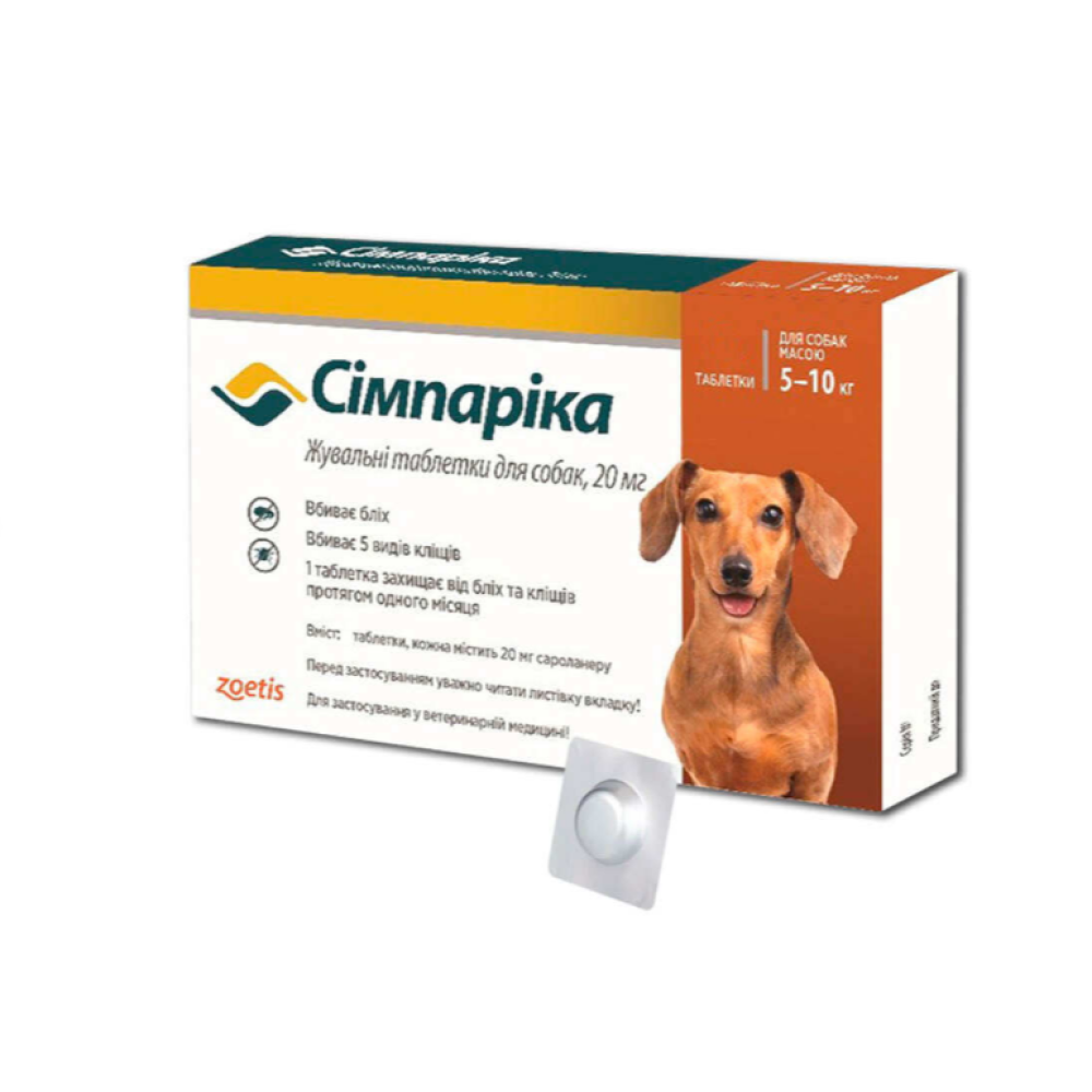 Zoetis Simparica - таблетки Сімпариіка від бліх та кліщів Вага 5 - 10 кг , одна таблетка