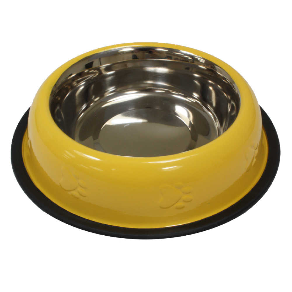Миска для собак з нержавіючої сталі з карбуванням на гумі CROCI, жовта