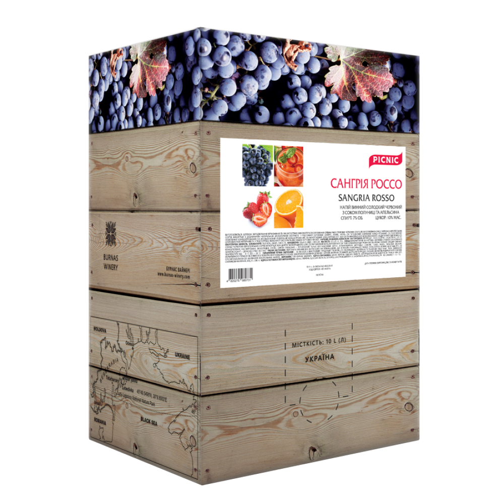 Описание Напиток винный сладкий с соком клубники и апельсина "Сангрия Россо" ТМ "PICNIC" 10 л. (4820179626322)