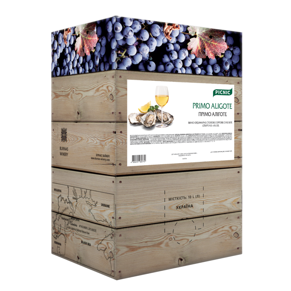 Описание Вино столовое сухое белое "Примо Алиготе" ТМ "PICNIC" 10 л. (4820179624229)