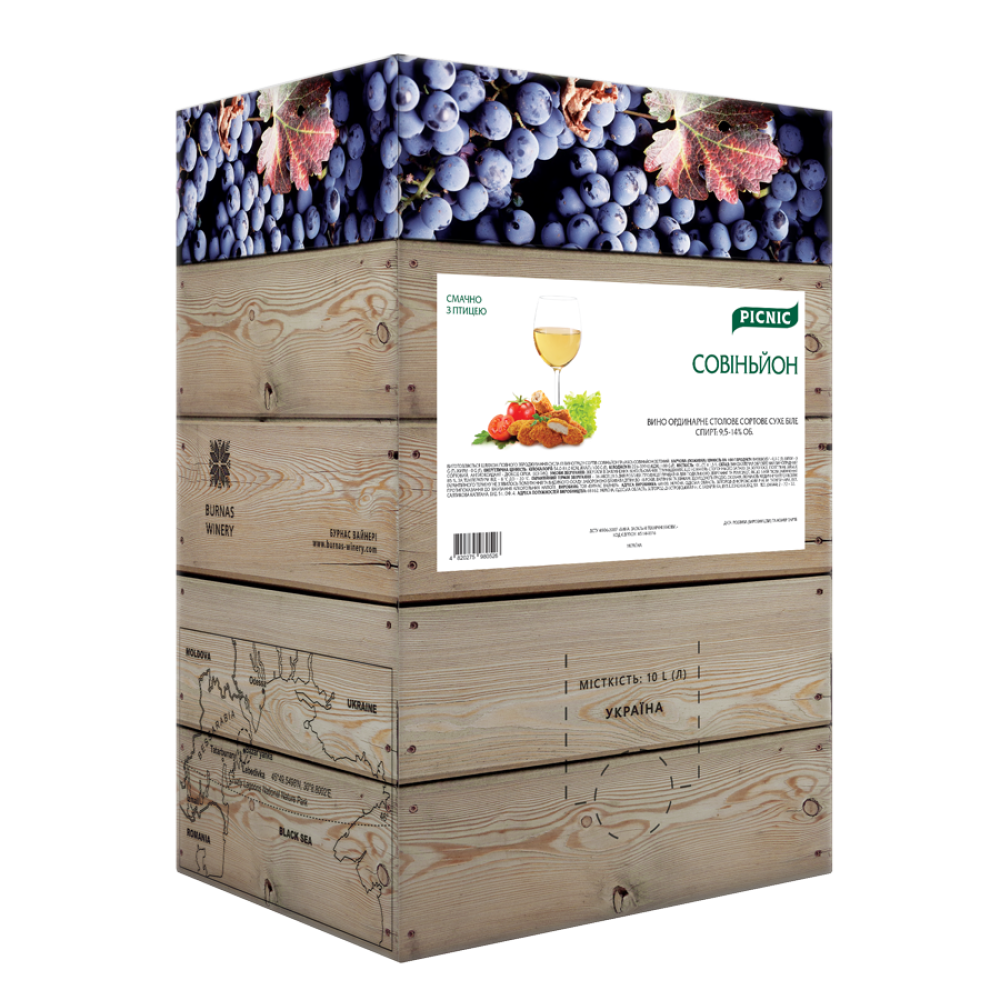Описание Вино столовое сухое белое "Совиньон" ТМ "PICNIC" 10 л. (4820179626445)