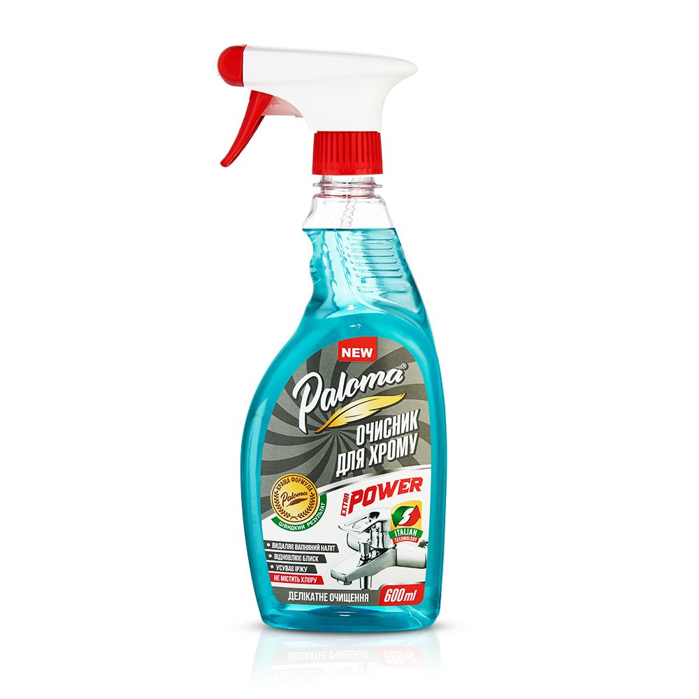 Засіб швидкої дії для делікатного чищення хромованих поверхонь. Забезпечує відновлення дзеркального блиску. Легко видаляє вапняний наліт, іржу зі змішувачів та інших хромованих деталей. Не містить хлору, кислот та абразивів. Захищає від корозії та утворення нальоту. Спеціальні сировинні компоненти, модифікатори поверхні, забезпечують додатковий пролонгований захист та полегшують наступні миття. Склад: вода демінералізована, дезінфектант: гіпохрорит натрію 4 г/100 г, відбілювач на основі хлору (гіпохлорит натрію), неіоногенні ПАР, ароматизатор.