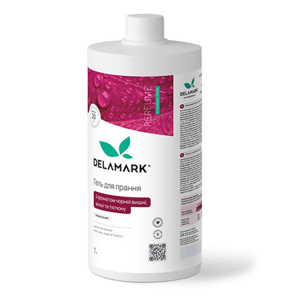 Описание Гель для стирки универсальный DeLaMark с ароматом чёрной вишни, замши и табака 1 л