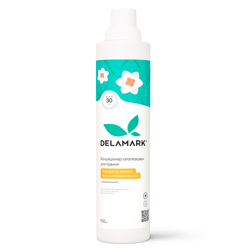 Кондиционер-ополаскиватель DeLaMark с ароматом жёлтого ириса и нотками нарцисса — экологичное концентрированное средство для заключительного этапа стирки. Имеет безопасный для человека и природы состав. Делает выстиранные вещи нежными и мягкими. Облегчает глажение, не даёт вещам электризоваться и оказывает лёгкое дезинфицирующее действие.