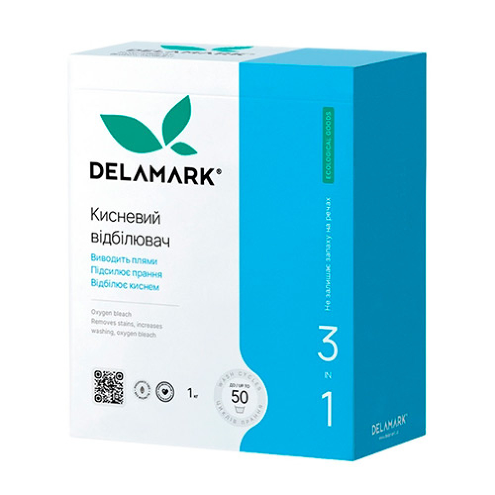 Экологичное средство для стирки DeLaMark 3 в 1: выводит пятна, усиливает стирку, отбеливает кислородом. Эффективно благодаря высокой концентрации кислородного отбеливателя на основе соды и перекиси водорода. В водном растворе средство образует атомарный кислород, который мягко отбеливает, обесцвечивает окрашенные пятна и обезвреживает микробы. При этом волокна ткани не разрушаются.